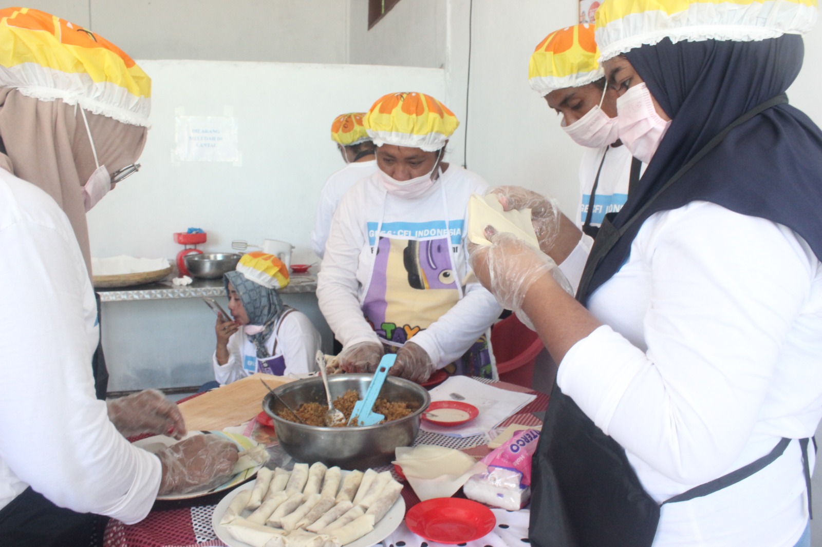 Suasana tampak penuh antusiasme. Para siswa dan peserta—yang sebagian besar merupakan ibu rumah tangga nelayan—bersemangat mengikuti setiap tahap kegiatan, mulai dari proses memasak hingga mempresentasikan hasil olahan mereka.